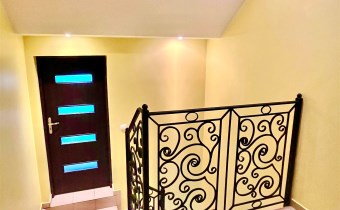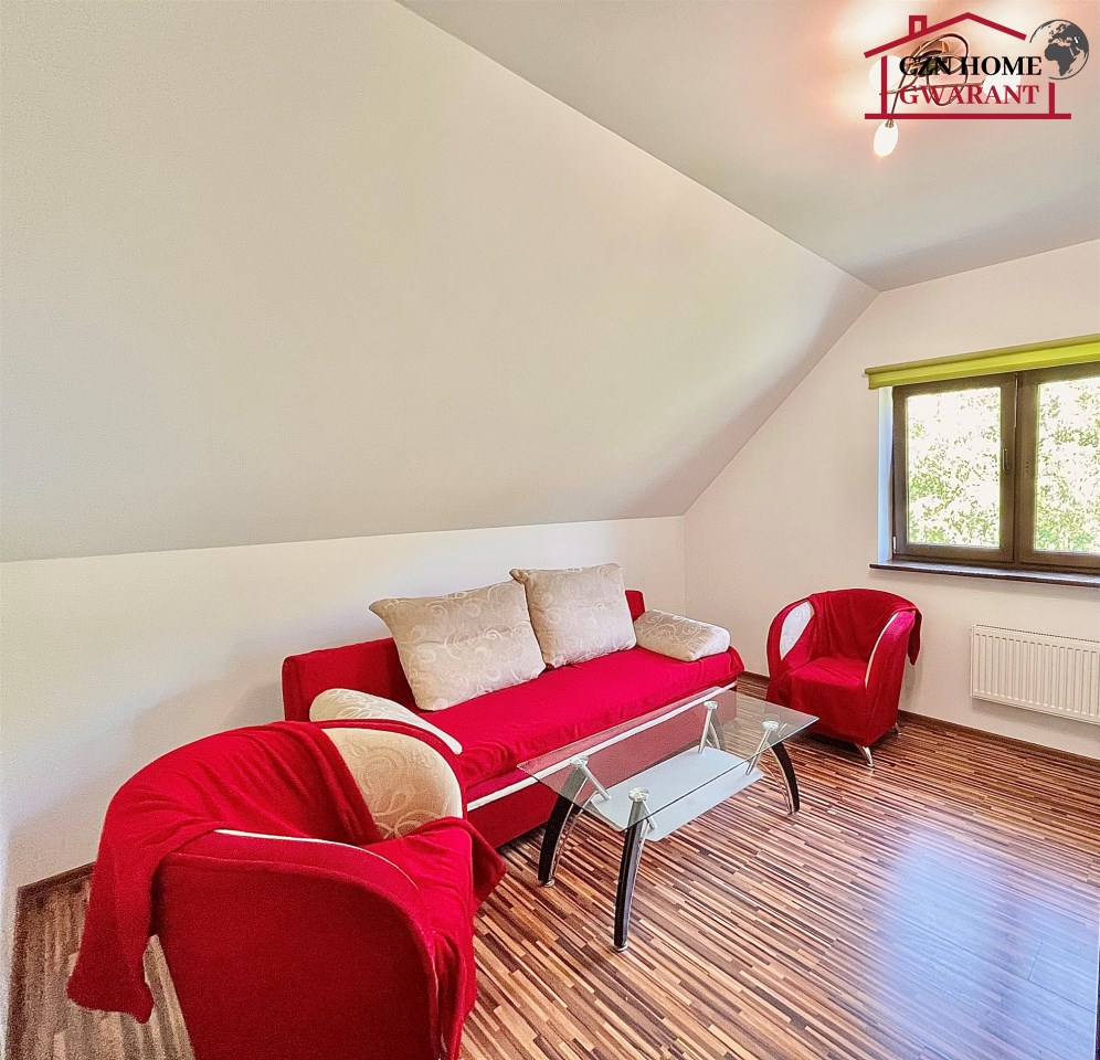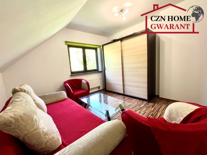Dodatkowe udogodnienia to garaż wewnętrzny i drugi zewnętrzy na drugi samochód oraz pomieszczenie gospodarcze. Budynek pobudowany z bloczków komórkowych, ocieplenie styropianem 15cm, nawodnienie ogrodu, na dachu położona blachodachówka, na zewnątrz kostka brukowa i liczne nasadzenia, w tyle działki urządzony i ogrodzony ogródek działkowy pod uprawę warzyw. W ubiegłym roku umyta elewacja, dach i kostka brukowa.