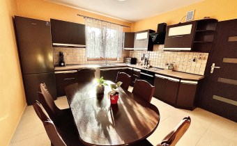 Dom składa się z przestronnego salonu, w którym można spędzać czas w gronie rodziny i przyjaciół. Duże okna w salonie zapewniają mnóstwo naturalnego światła i malownicze widoki na okolicę. Kuchnia jest w pełni wyposażona i gotowa do przygotowania pysznych posiłków a duża jej powierzchnia gwarantuje doskonałe miejsce na wspólne spotkania.