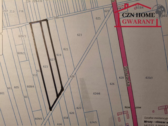Proponujemy do sprzedaży działkę rolno budowlaną o powierzchni 1.25 ha w miejscowości Guzew gm. Mrozy. Działka nr 615 i 617 o szerokości  50 m położona jest pomiędzy dwoma drogami gruntowymi od północy i od południa. Przy drodze północnej oddalonej od drogi asfaltowej 200 m znajduje się prąd i wodociąg.